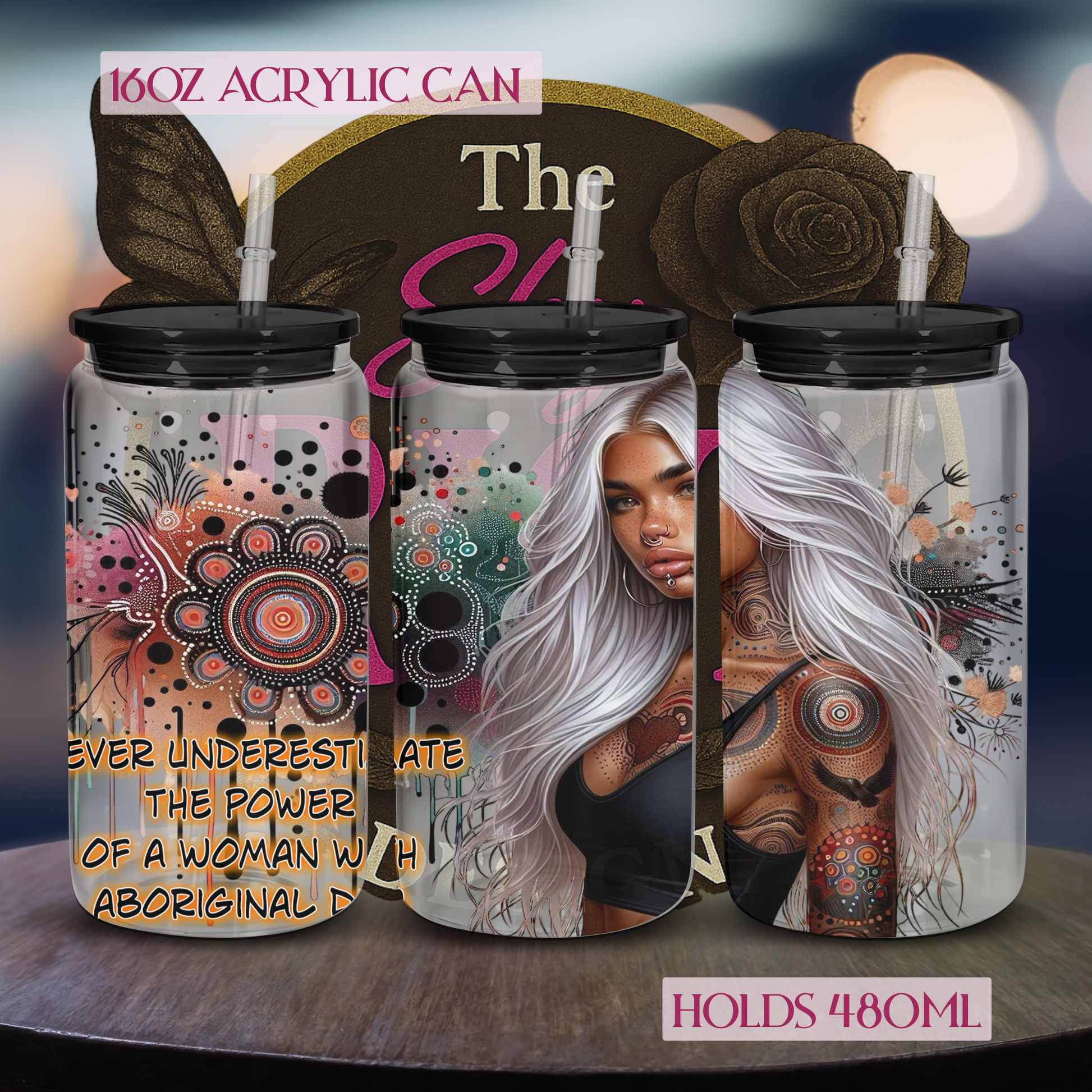 Strong. Fierce. Unapologetically rooted. This tumbler celebrates strength, resilience, and culture with stunning Aboriginal-inspired art wrapped around bold feminine energy. Whether it’s your morning coffee or iced tea, this cup’s got your back.