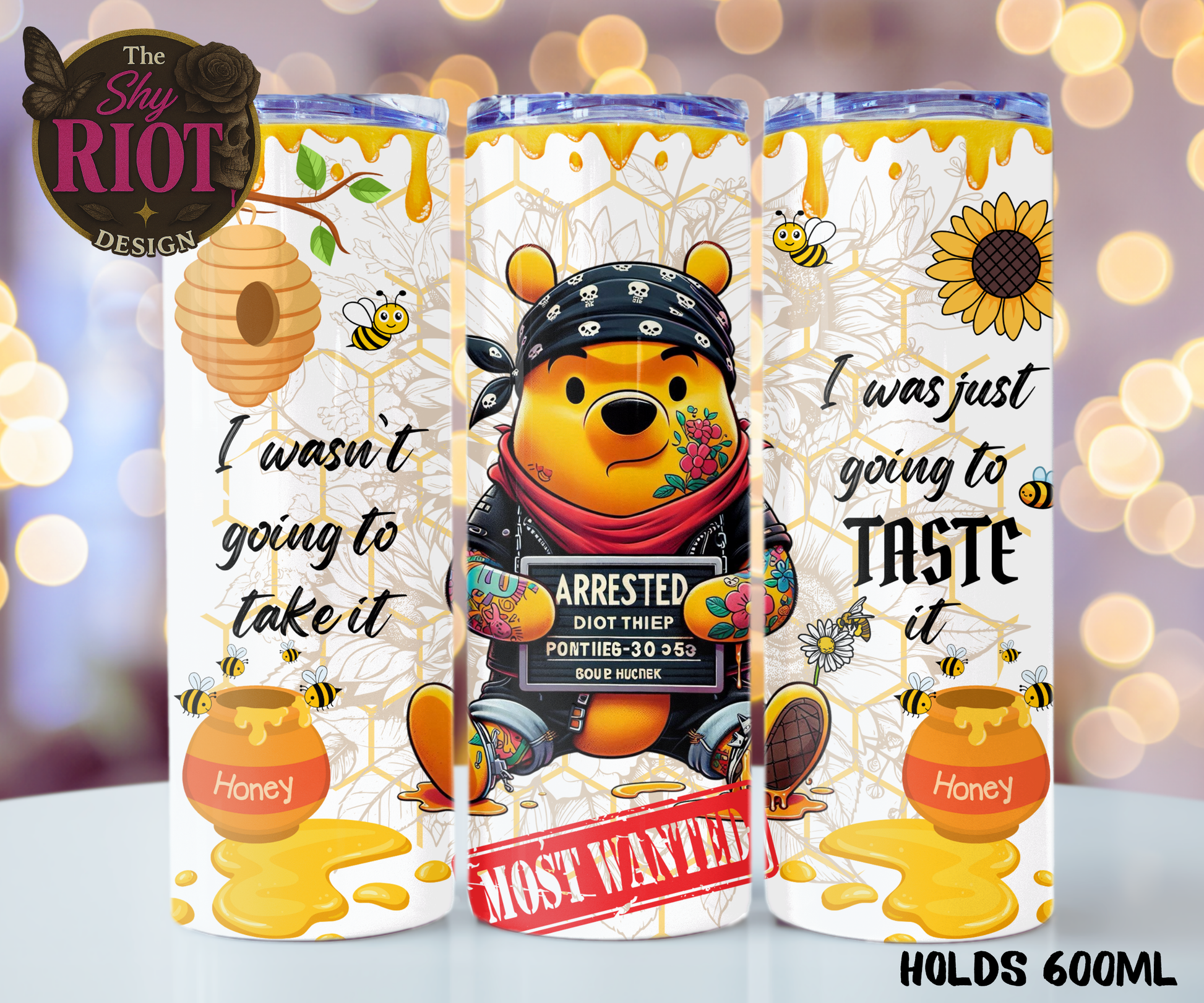 For the honey thief in all of us — but make it cute and a little bit criminal. This 600ml stainless steel tumbler features the baddest bear in the Hundred Acre Hood, caught red-handed (or should we say honey-handed?) but still rocking that innocent who, me? face we all know too well.