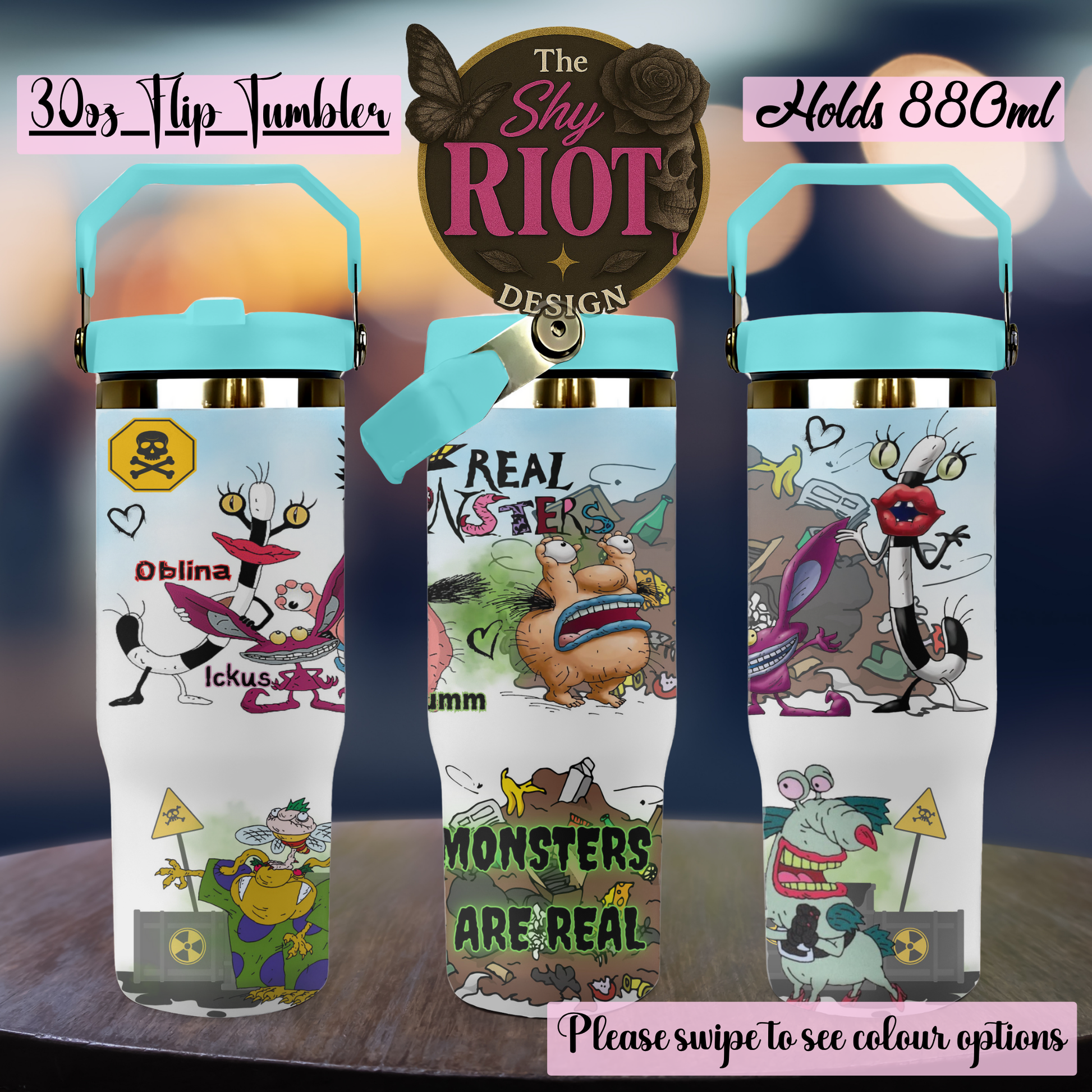 This 30oz flip-top tumbler is a glorious, chaotic love letter to the real MVPs of our cartoon-fueled childhood: Ickis, Oblina, Krumm and the gang. With gross-out grins, radioactive drips, and all the creepy nostalgia you didn’t know you missed—this one screams “raised by weirdos, powered by caffeine.”