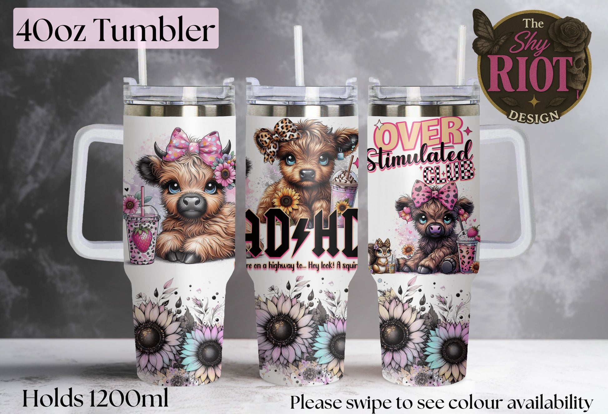 Same chaos, just dressed up a little cuter. This 1.2L pastel perfection is for the overwhelmed-but-adorable babes with ADHD brains running on caffeine, glitter, and vibes. Featuring pink bows, boba, neurospicy cows, pastel florals, and hyperactive little critters — because sometimes life feels like a constant squirrel chase.