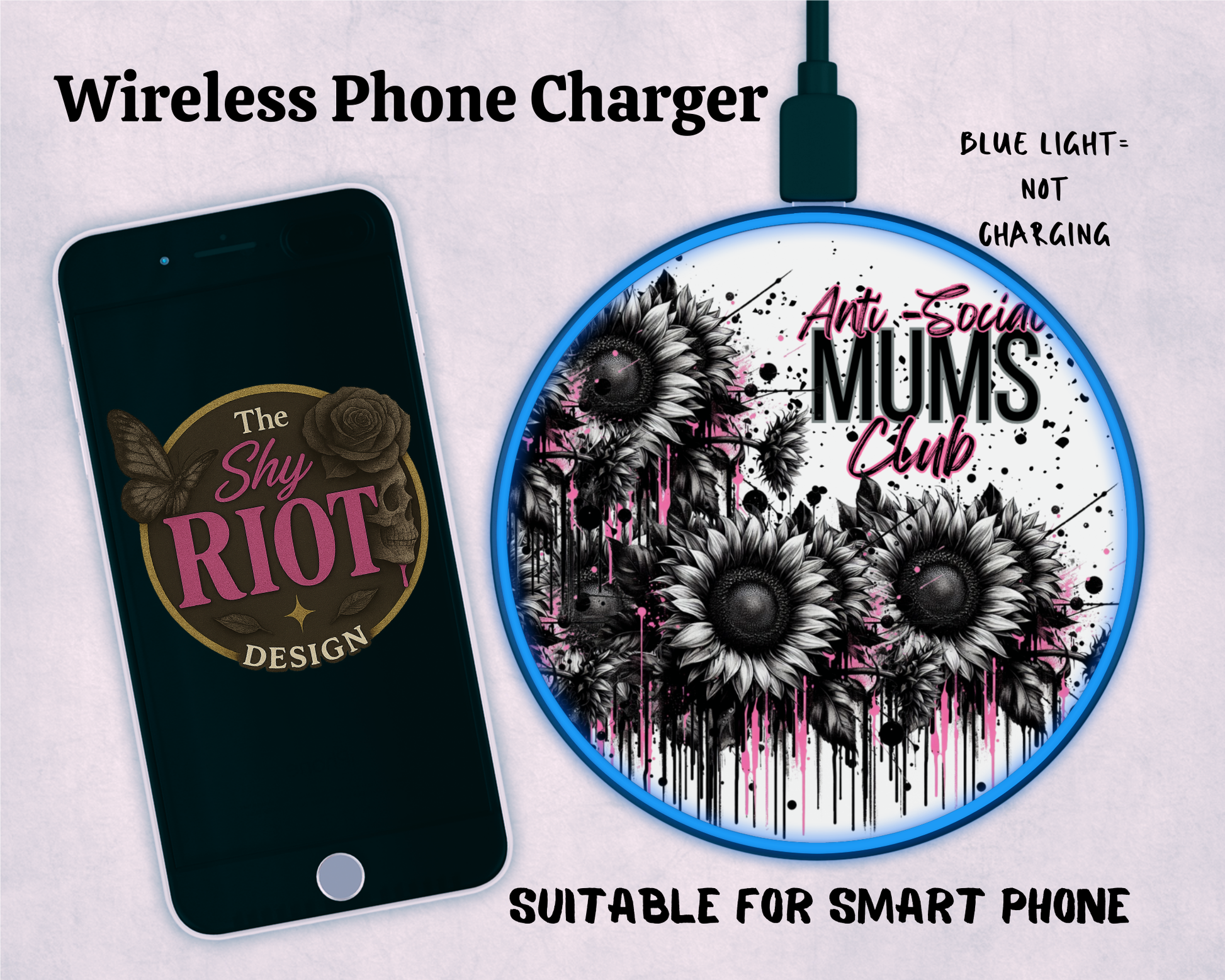Anti-Social Mums Club Wireless Charger – Grunge Sunflower Edition