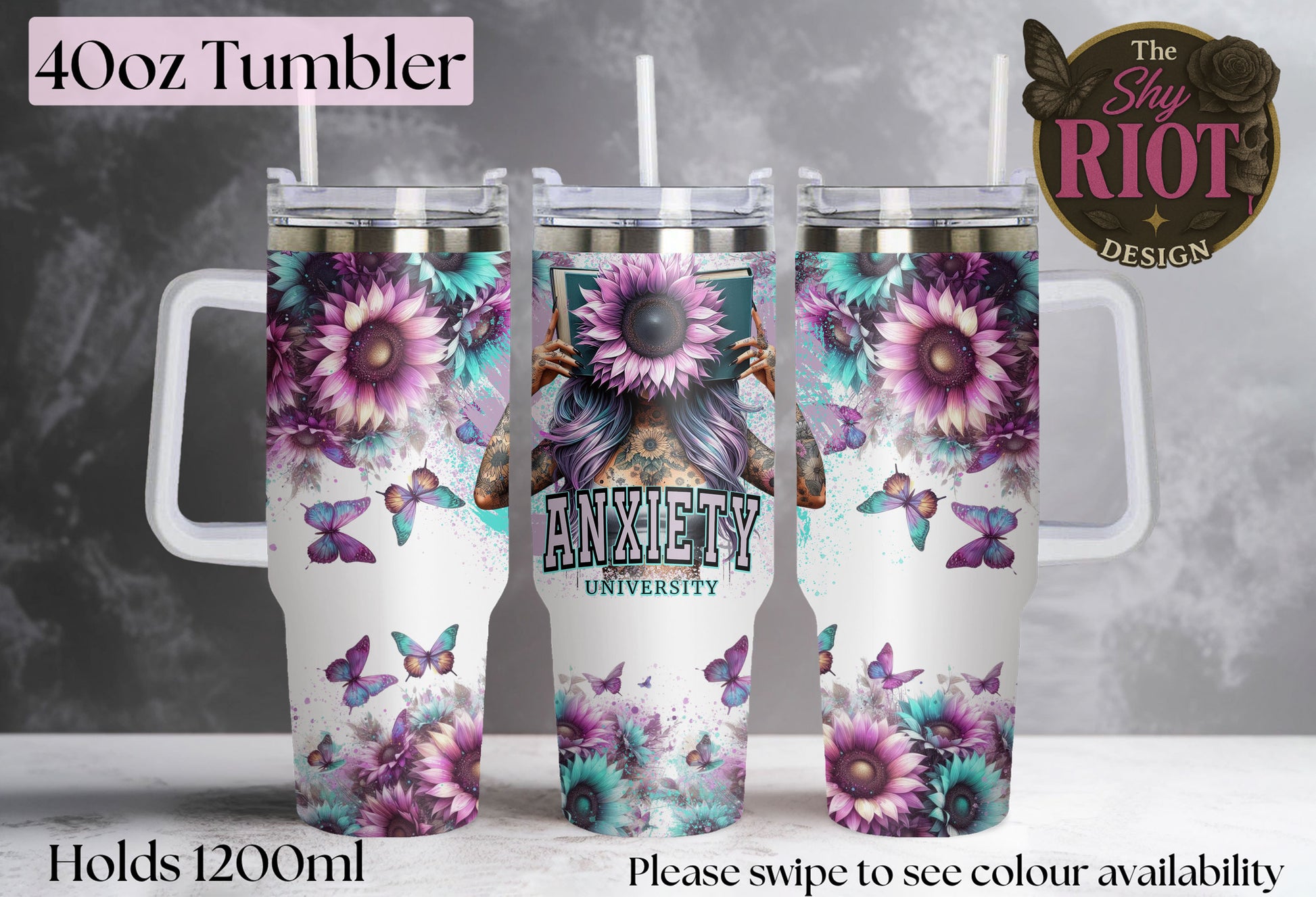Because you didn’t just attend — you graduated with honors. This 1.2L anxiety anthem features pastel purples, turquoise blooms, butterflies, and that overwhelmed-but-cute aesthetic that screams: I’m fine. Everything’s fine. Probably. The perfect daily companion for overthinkers, worry-warts, and neurospicy minds everywhere.