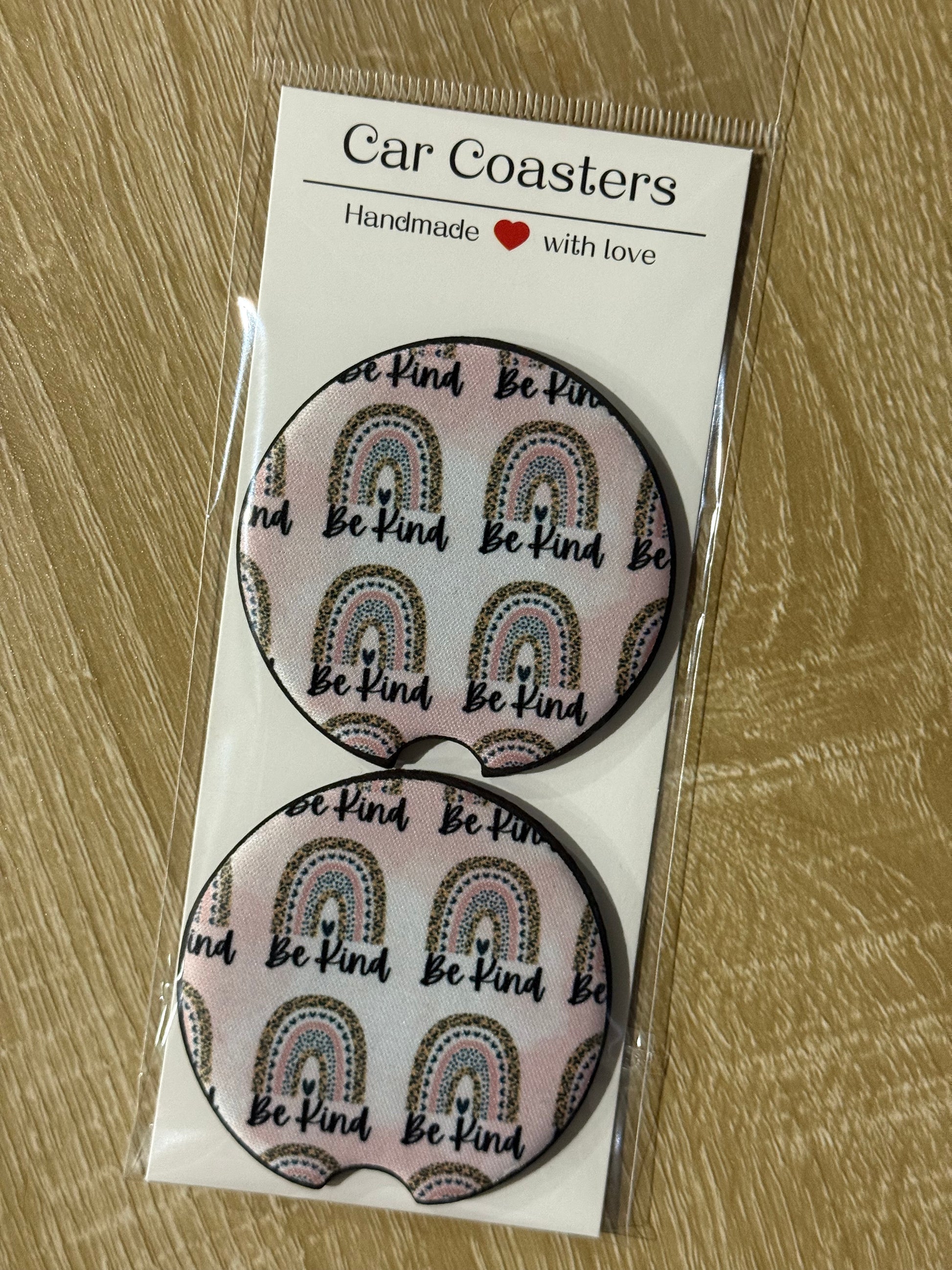 These coasters are designed to fit most standard car cup holders. They help catch drips, spills, and condensation while adding a little style to your drive.