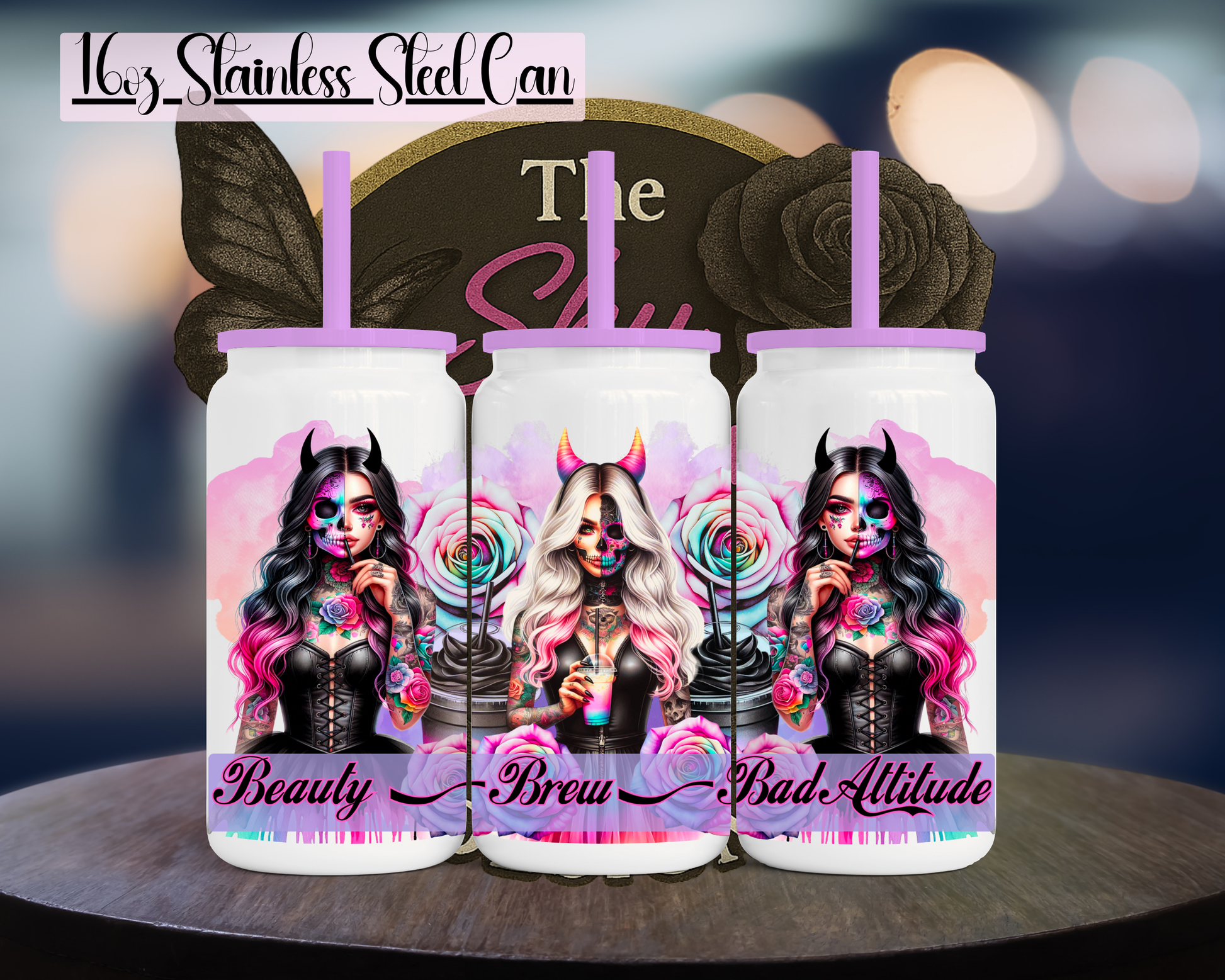 Beauty Brew & Bad Attitude - 16oz Libbey Stainless Can
