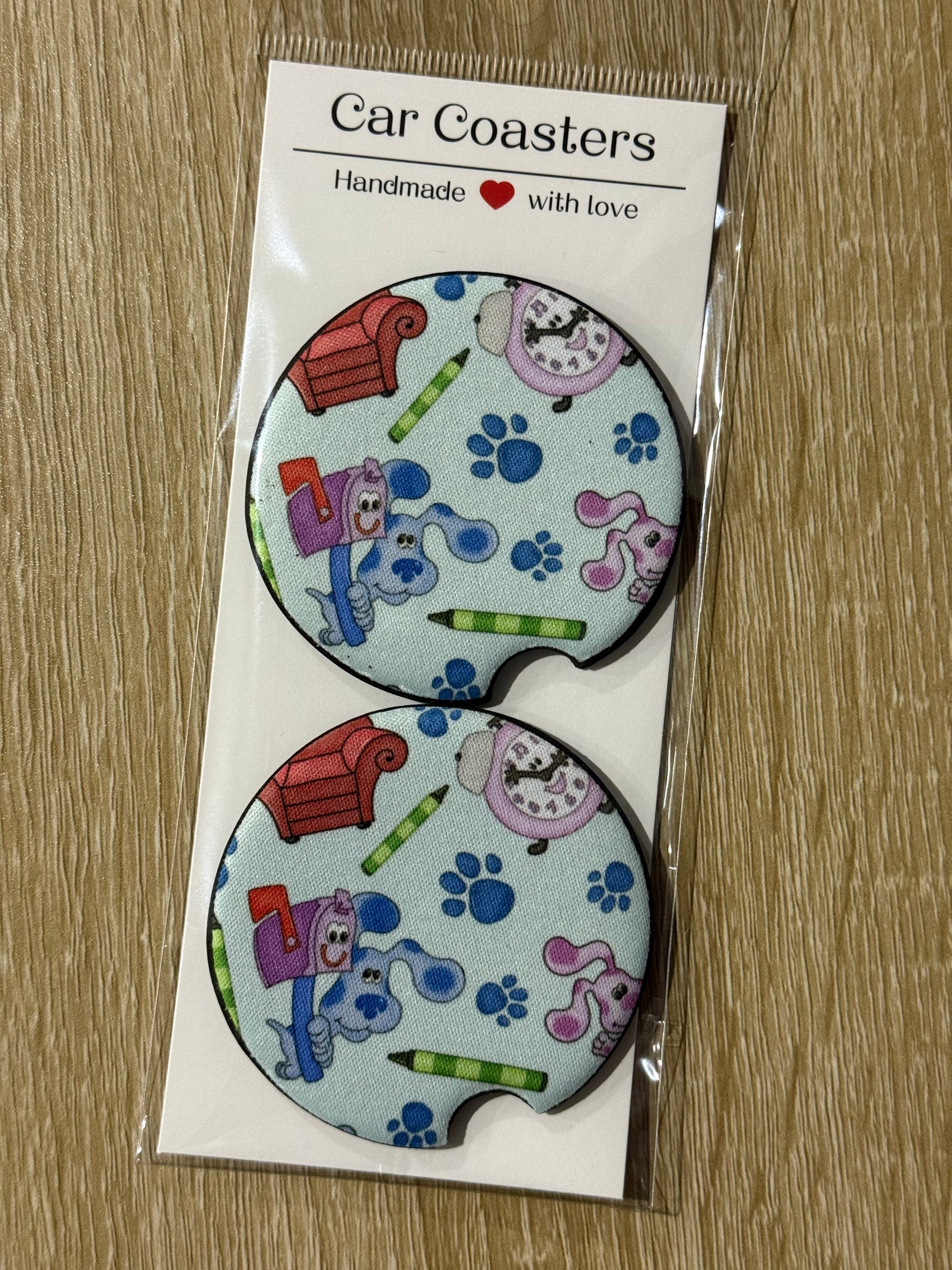 These coasters are designed to fit most standard car cup holders. They help catch drips, spills, and condensation while adding a little style to your drive.