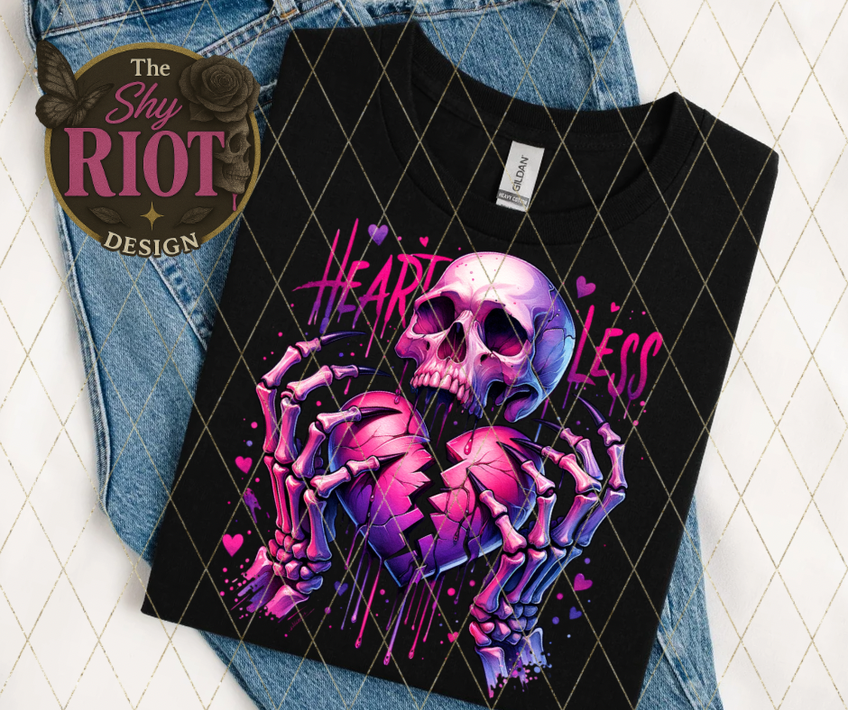 This tee serves heartbreak realness with a splash of neon rage — because who says being dead inside can’t look this damn good? Featuring a skeletal grip on a shattered heart with bold pink and purple hues, this 100% cotton oversized beauty is made for those who gave their last f**k away ages ago.