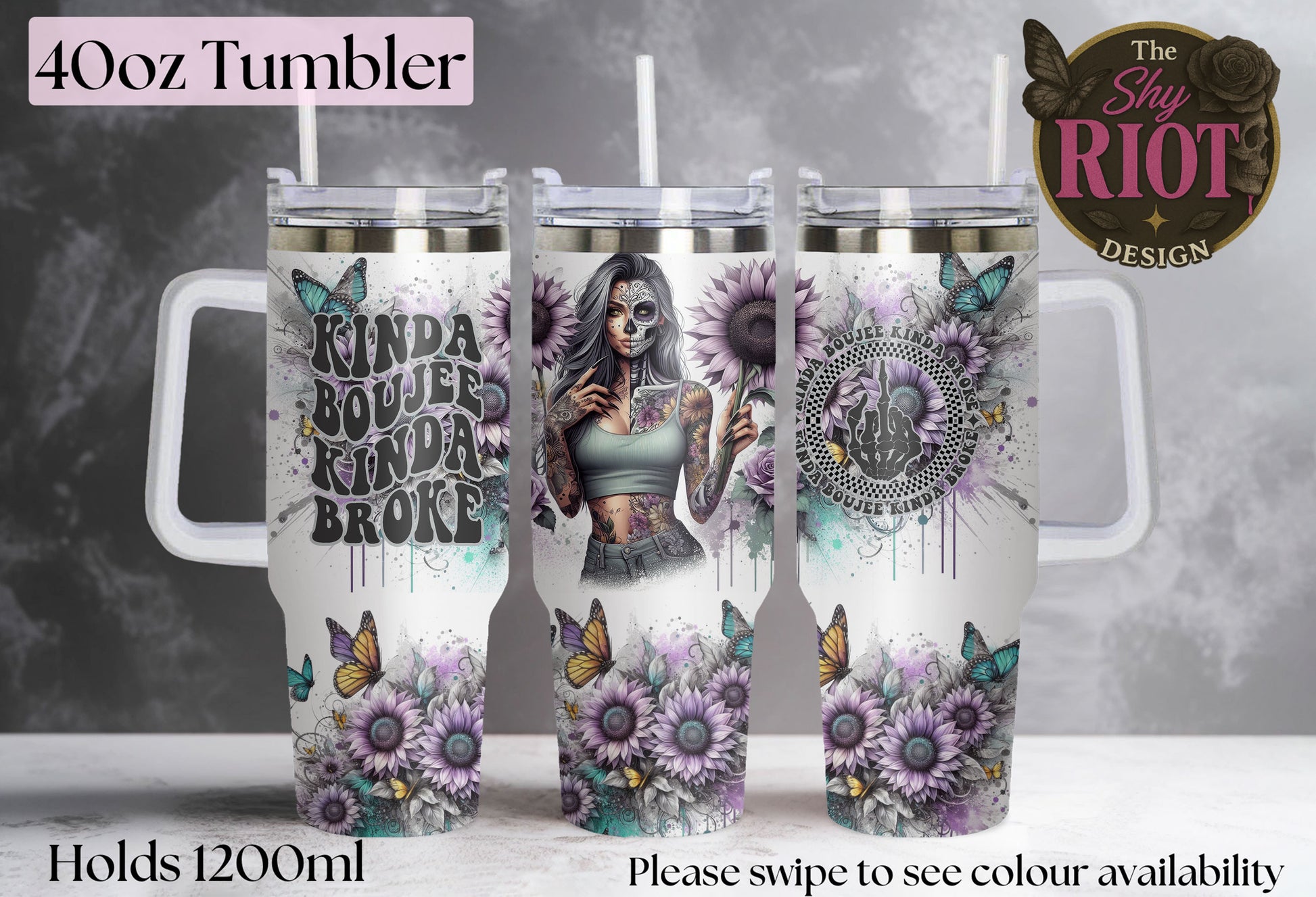 Because let’s be honest — you’ve got champagne taste on a budget that keeps side-eyeing your Afterpay. This 1.2L vibe check features pastel skulls, sunflowers, butterflies, sugar skull ink queen, and just the right balance of glam, sass, and financial delusion. Boujee? Yes. Broke? Also yes. Regrets? None.