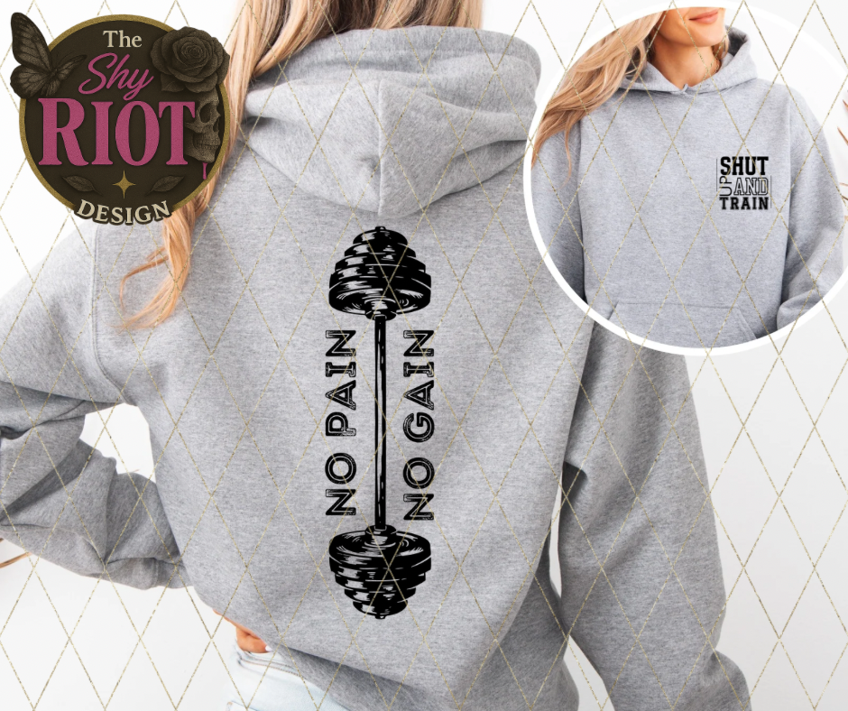 This oversized unisex hoodie does the talking so you can focus on the gains — with “Shut Up and Train” on the front and “No Pain No Gain” with a badass barbell on the back. Soft cotton-blend comfort for smashing goals, setting PRs, and ignoring anyone who dares interrupt leg day.