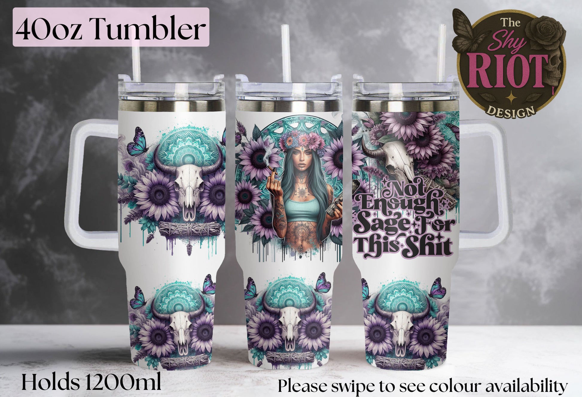 Because let’s be real: some days require more than crystals, sage, or patience. This 1.2L vibe cleanser features teal mandalas, skulls, dark sunflowers, butterflies, tattoos, and the ultimate “don’t push me” goddess energy. It’s perfect for anyone who’s done manifesting and ready to just hex stupidity with caffeine.