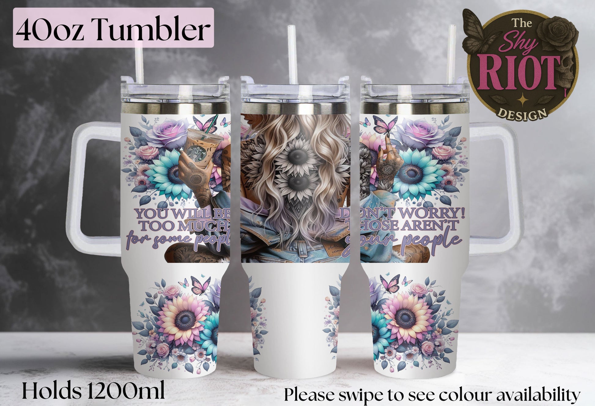 For the ones who’ve been told they’re “too much” — too loud, too bold, too everything — and chose to stay exactly that. This 1.2L unapologetic statement piece features rich florals, butterflies, iced coffee, hand tattoos, and that signature middle finger energy wrapped in soft pastels. Because the right people? They’ll love every drop of your “too much.”