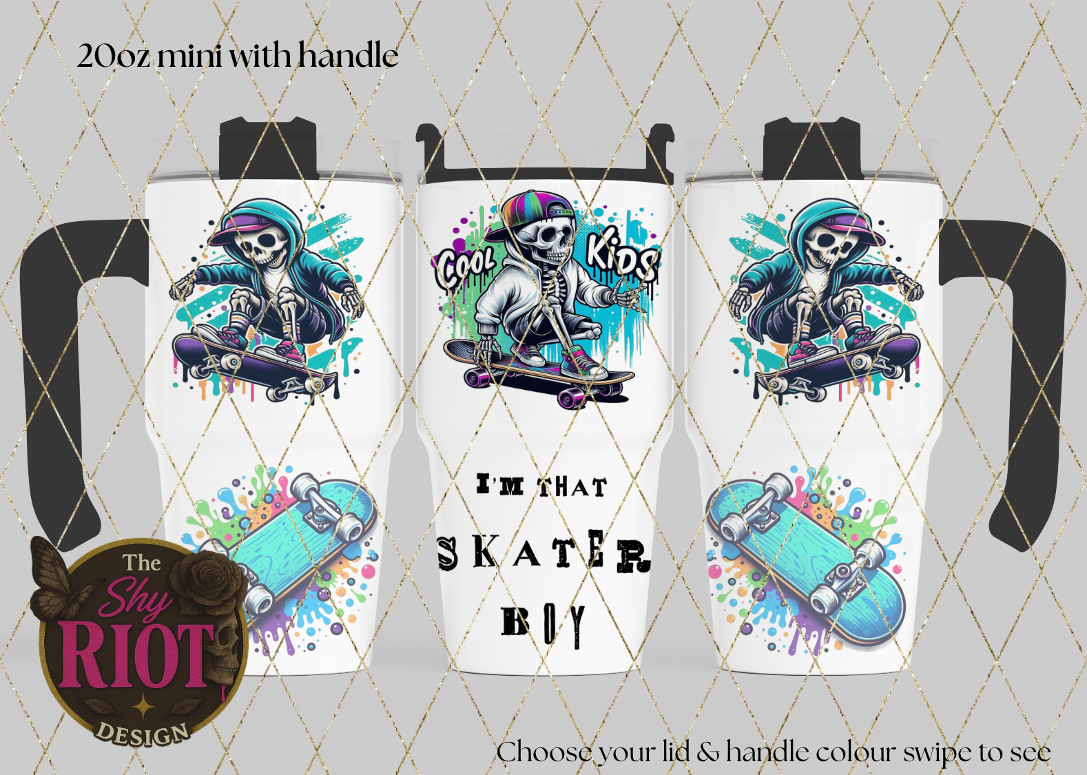 Kickflips, cool vibes, and chaotic energy—this one’s for the skatepark legends and sidewalk shredders. Rocking a slick skeleton skater with street-style edge, this tumbler is all about that “too cool for rules” life.