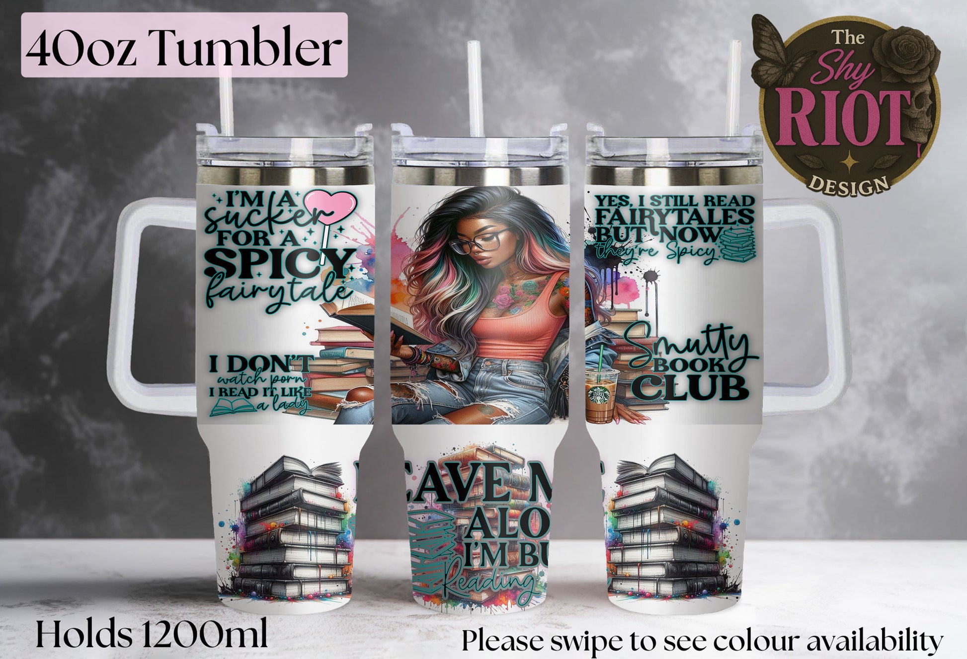 For the introverts who don’t do small talk but will absolutely dissect the latest spicy fantasy series over coffee. This 1.2L guilty pleasure features sultry tattooed book babes, soft watercolor blooms, and zero shame about your reading habits. Because no, you’re not watching porn — you’re reading it like a lady.