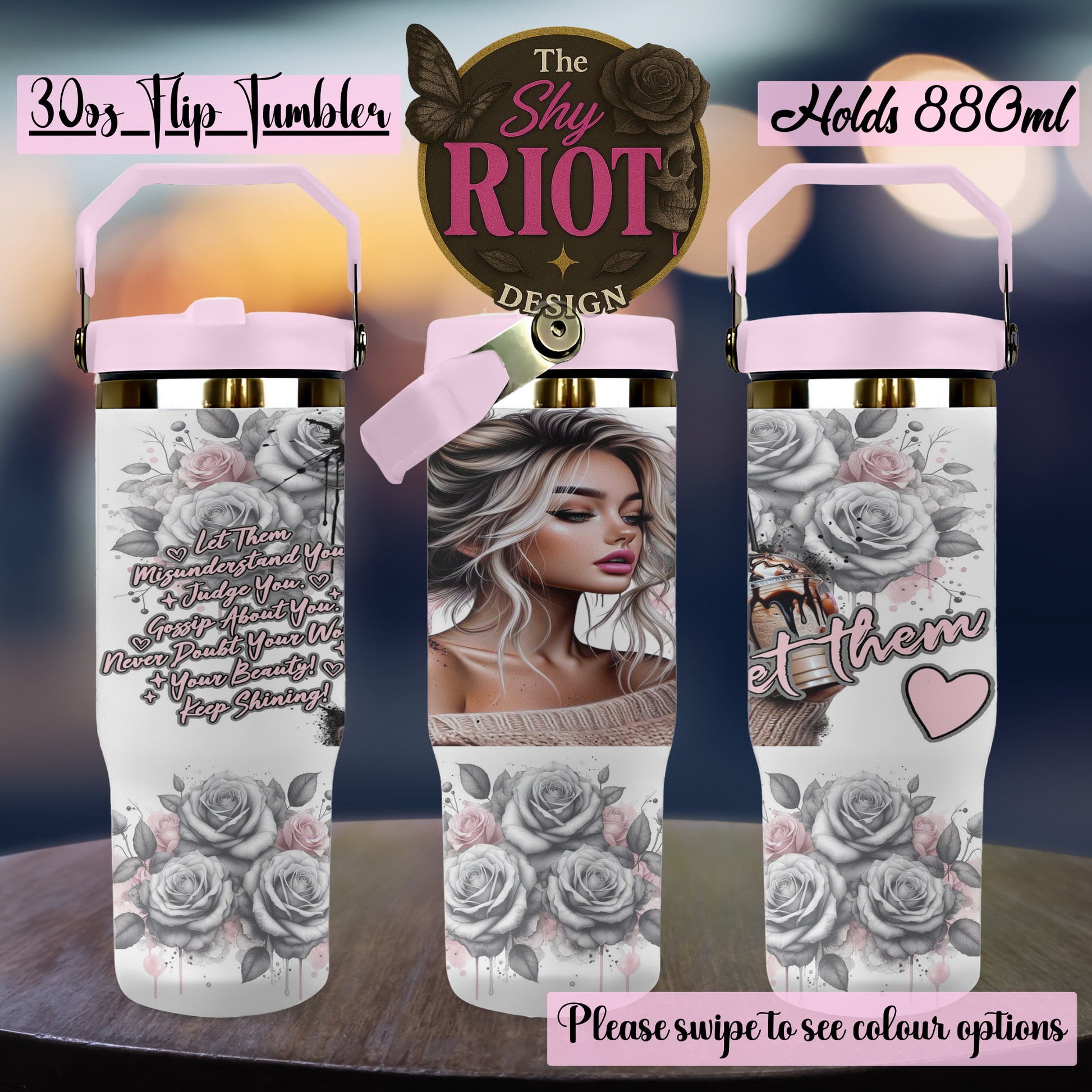 This 30oz flip-top tumbler is your daily reminder to let ‘em talk while you hydrate like the unbothered goddess you are. Featuring soft rose florals, creamy neutrals, and one fierce energy – she’s giving “misunderstood but moisturised.” Made with 304 food-grade stainless steel and double-walled insulation, it keeps your drinks hot or iced longer than that one-sided friendship lasted.