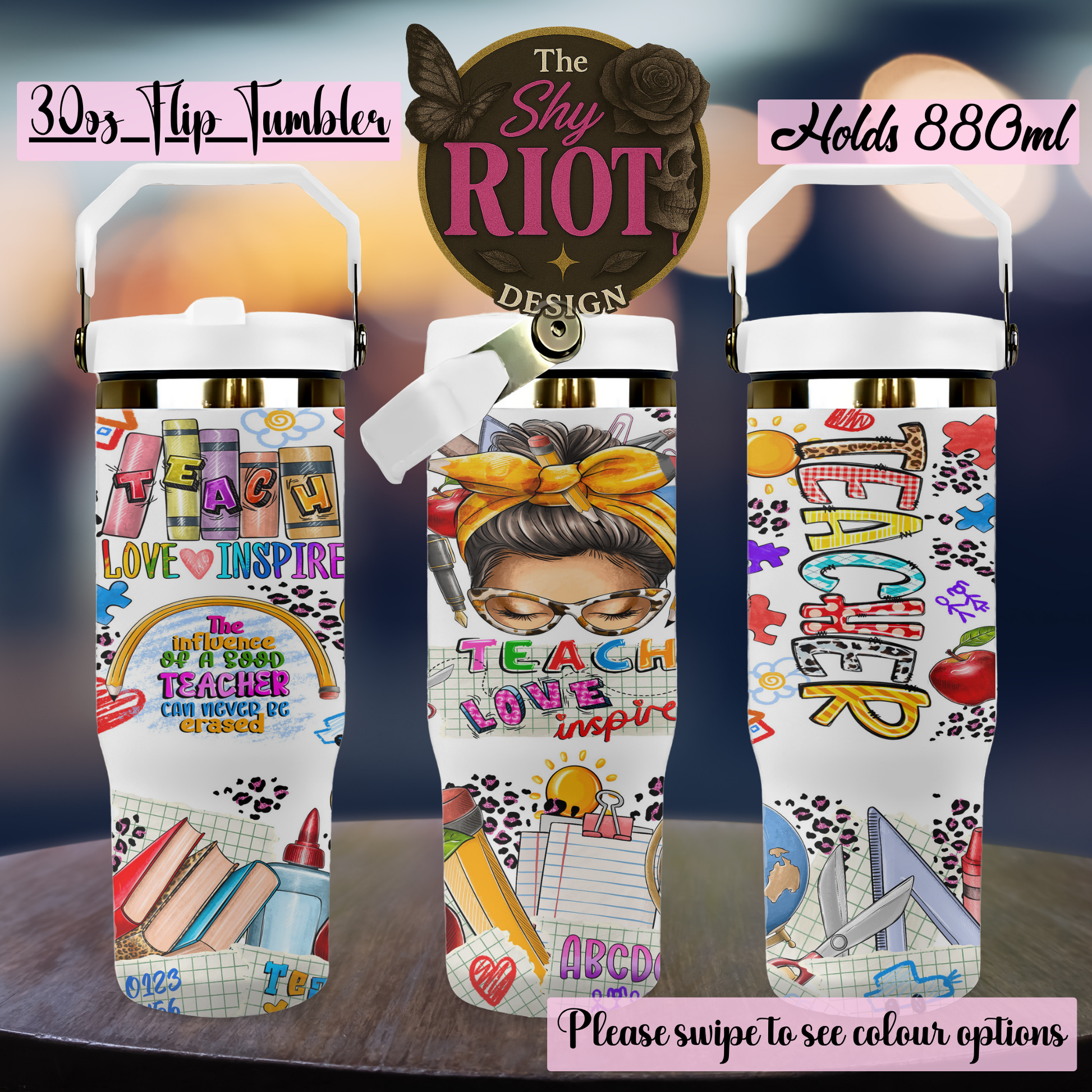 This 30oz flip-top tumbler is a love letter to the unsung superheroes of sticky-fingered chaos. Packed with doodles, bright colours, school supplies, and just enough sass to get through Monday, this is the perfect sidekick for educators who teach with heart (and grade papers in their car at pick-up).