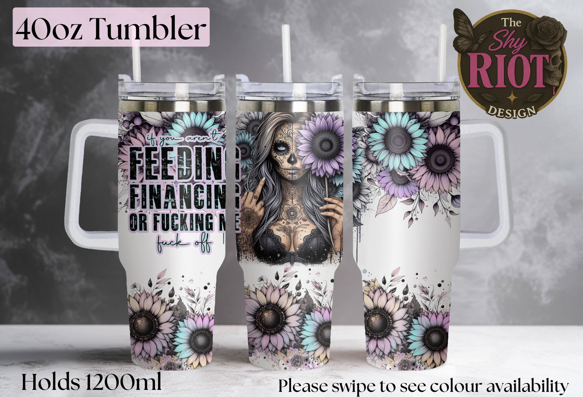 For the brutally honest queens who don’t entertain irrelevant opinions. This 1.2L bold statement piece screams zero tolerance, full confidence. Featuring sugar skull vibes, tattooed goddess, pastel sunflowers, and unapologetic boundaries served with pastel sass and just enough venom.